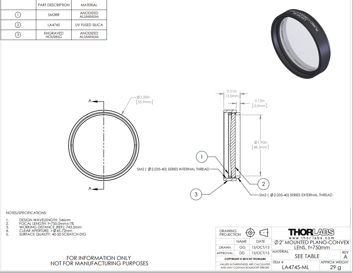 - 提供Ø1/2英寸、Ø1英寸,Ø2英寸和Ø75 mm 透镜,安装在SM螺纹外壳中
