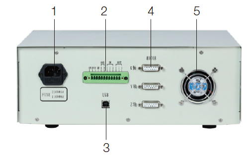 4. 轴接口:控制器与电移台连接线接口(DB15 孔)。