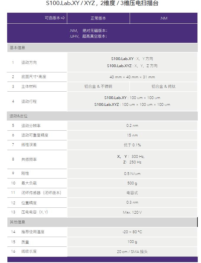 Carrier.S200.XY ⼤范围压电扫描台 — 技术参数