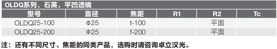 OLDQ系列平凹透镜选型表