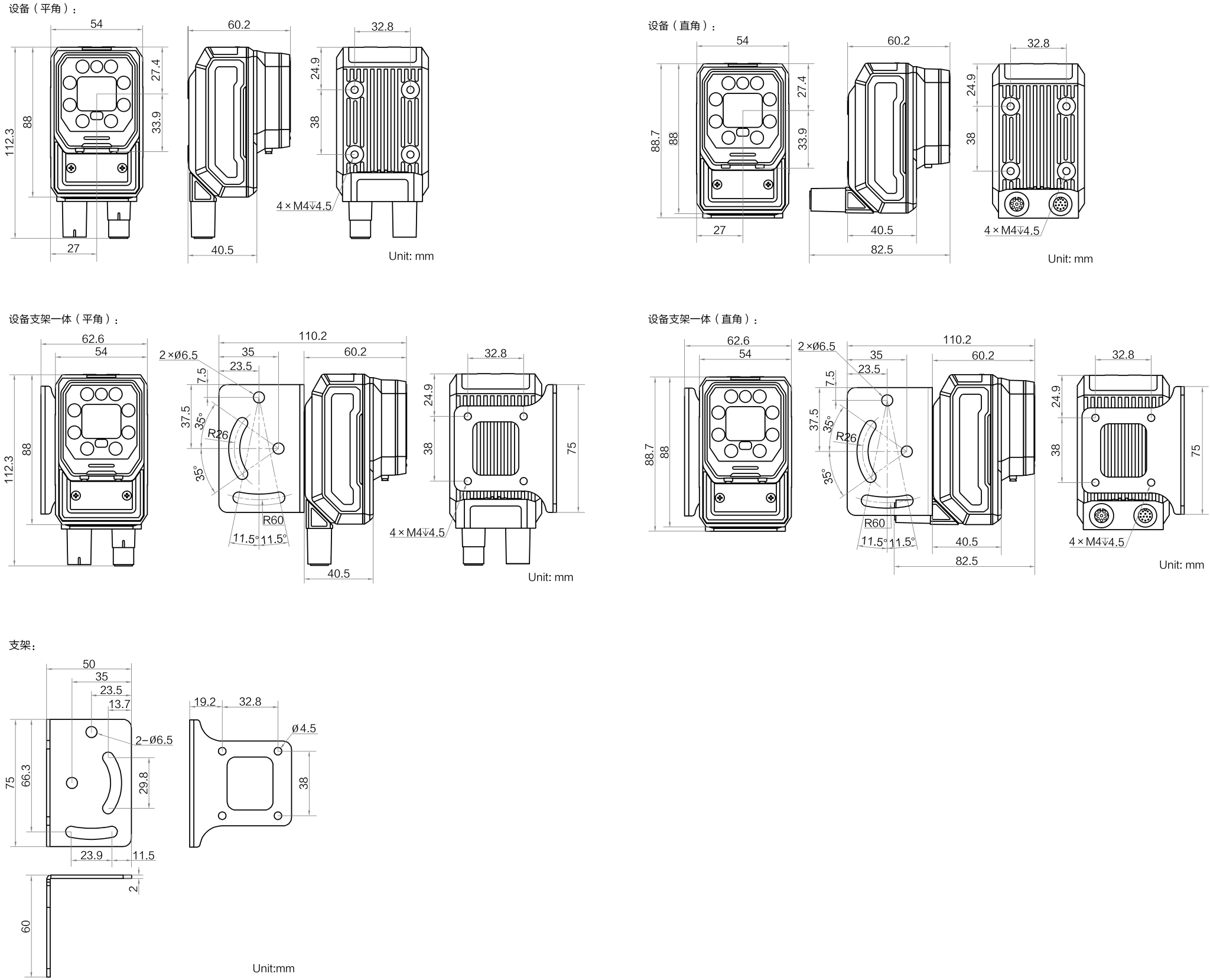 外形尺寸 | 平角:112.3 mm × 54 mm × 60.2 mm 直角:88.7 mm × 54 mm × 82.5 mm |