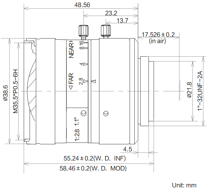 名称 | 16mm,F2.8,1.1",1200万分辨率,C接口镜头 |