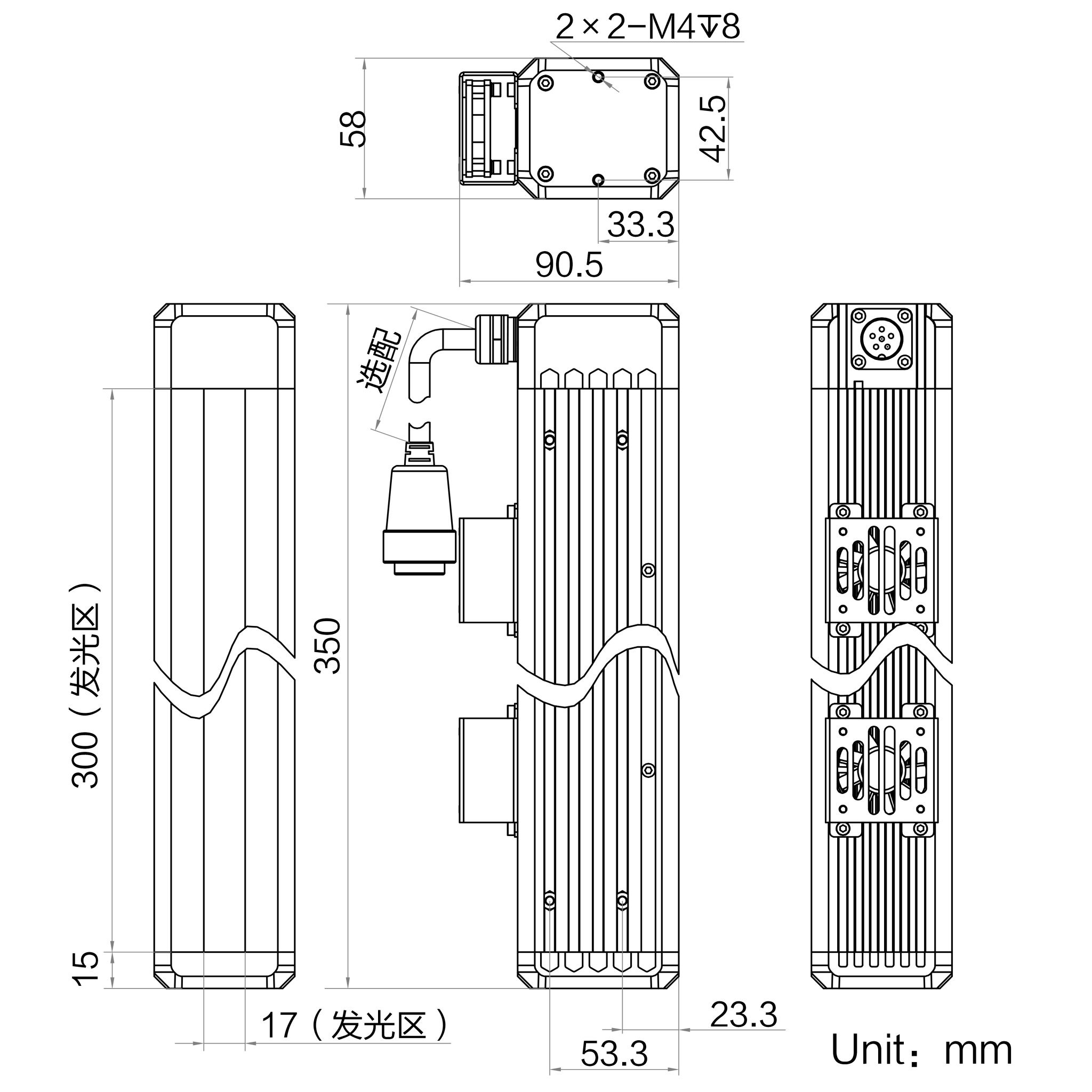 发光区尺寸 | 300 mm × 17 mm |