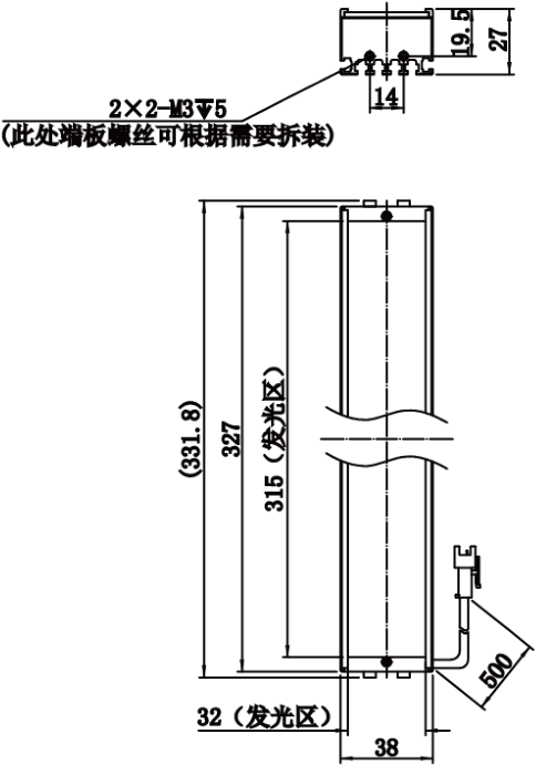 外形尺寸 | 327 mm × 38 mm × 27 mm |