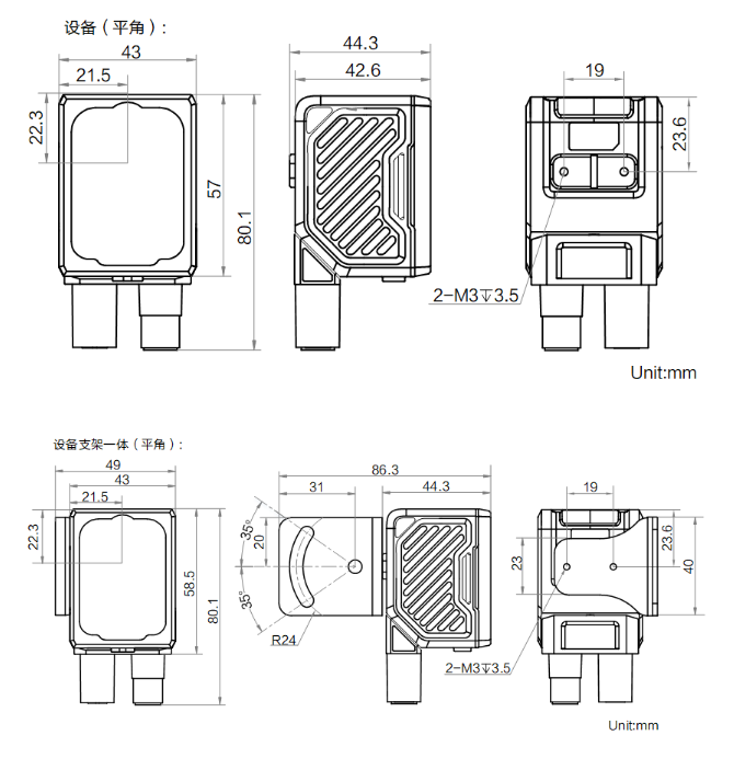 外形尺寸 | 平角:80.1 mm × 43 mm × 44.3 mm 直角:58.5 mm × 43 mm × 65.4 mm |