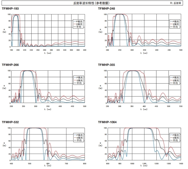 ▶技术指标的反射率是用P偏光和S偏光的反射率的平均值来表示的。