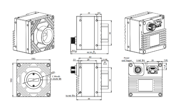 59.5mm x 59.5mm x 44mm(以上尺寸不含镜头底座和后壳接口)