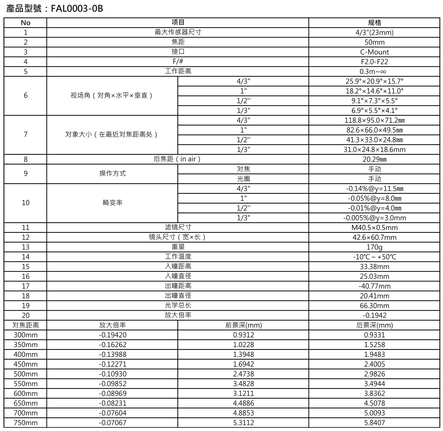 HUAGUO华国 FAL0003-0B FA镜头