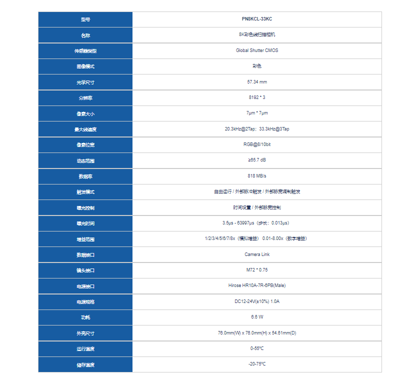 I-Tek埃科 PN8KCL-33KC 线扫描相机