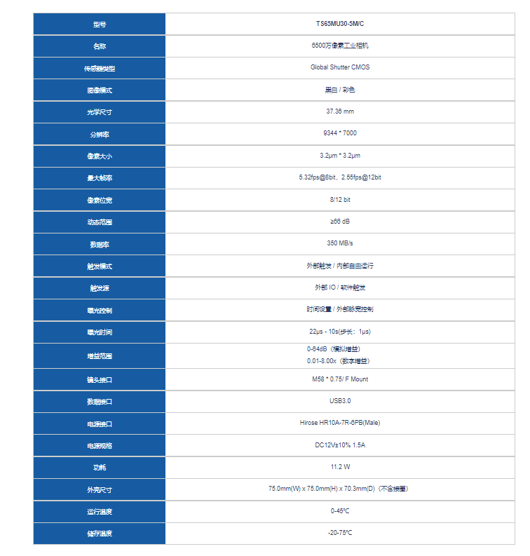 I-Tek埃科 TS65MU30-5M/C 大幅面扫描相机