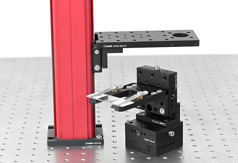 直角转接件适用于将光机械件相对光学平台、面包板或工作表面以90°角垂直安装,有助于形成稳定的三维光机装配。