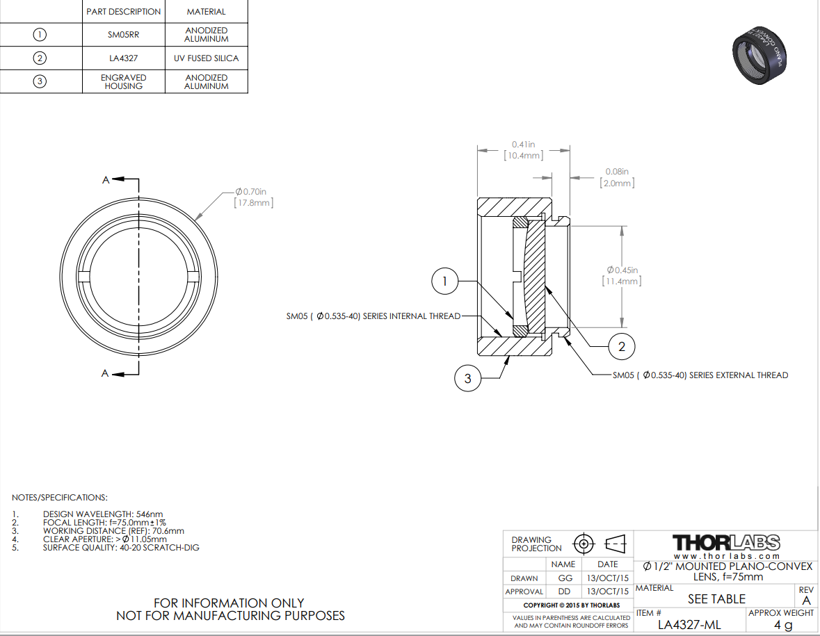 - 提供Ø1/2英寸、Ø1英寸,Ø2英寸和Ø75 mm 透镜,安装在SM螺纹外壳中