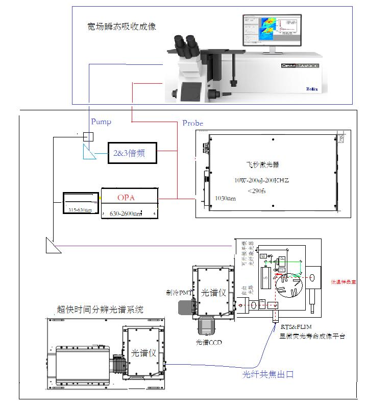 超快时间分辨光谱测试系统既可以与飞秒超快光源配合完成独立的光谱测试,也可以与卓立汉光的其他系统比如 TCSPC, RTS&FLIM显微荧光寿命成像系统,TAM900宽场瞬态吸收成像系统,以及低温制冷室,飞秒&皮秒激光器等配合完成更为复杂全面的超快测试。