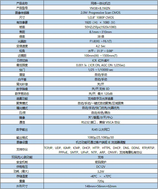 山田YAMAKO YM38×8.1M2N 网络一体化机芯