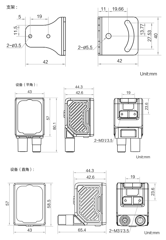 | 外形尺寸 | 平角:80.1 mm × 43 mm × 44.3 mm 直角:58.5 mm × 43 mm × 65.4 mm |