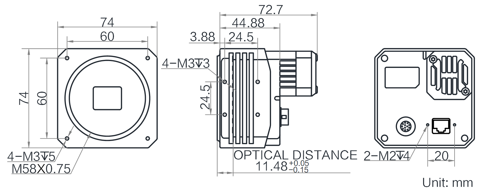 结构 | 镜头接口 | M58*0.75,法兰后焦11.48 mm |