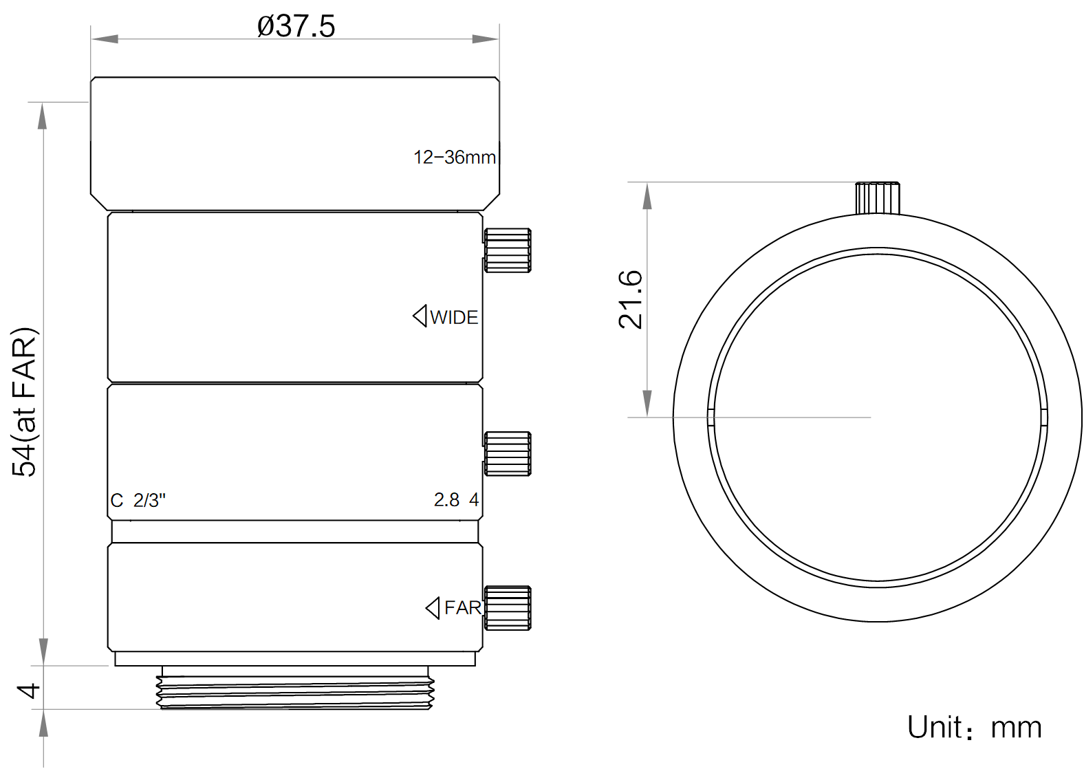 名称 | 12-36mm,F2.8,2/3",100万分辨率,C接口镜头 |