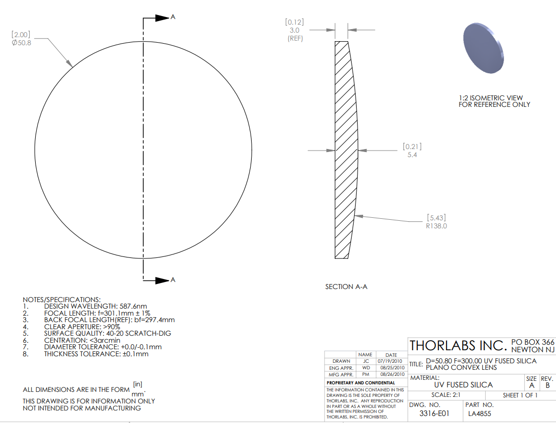 Thorlabs索雷博 LA4855 平凸透镜