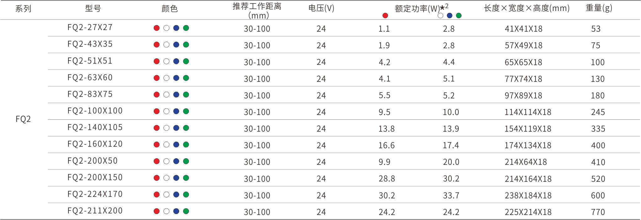*2 实际产品功率与功率表内容相差±10%为正常范围
