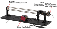图1.1 VL19C可调焦透镜安装在30 mm笼式系统中,其焦距由KPZ101 K-Cube压电控制器控制。KPZ101 K-Cube压电控制器为上一代产品不再单独提供,替代品为KPC101带应变读取功能的压电控制器。