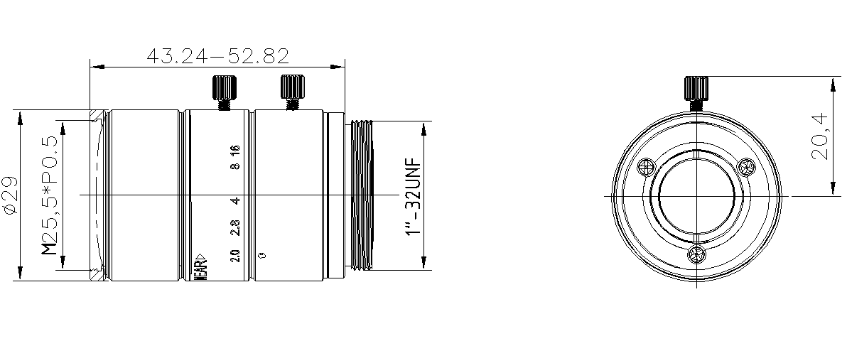 ● 最大支持2/3''靶面大小;