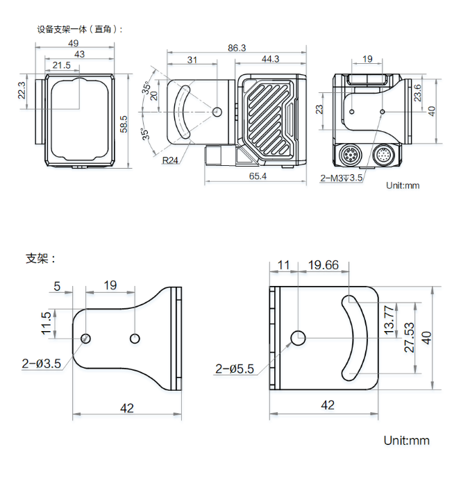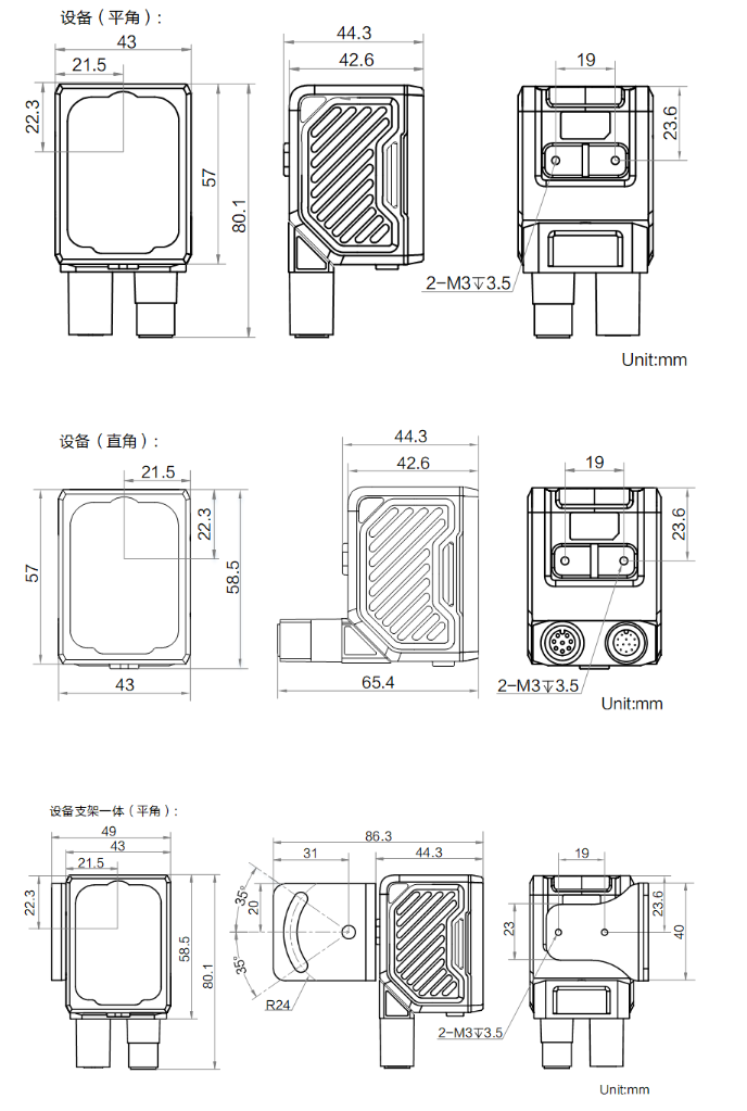 外形尺寸 | 平角:80.1 mm × 43 mm × 44.3 mm 直角:58.5 mm × 43 mm × 65.4 mm |