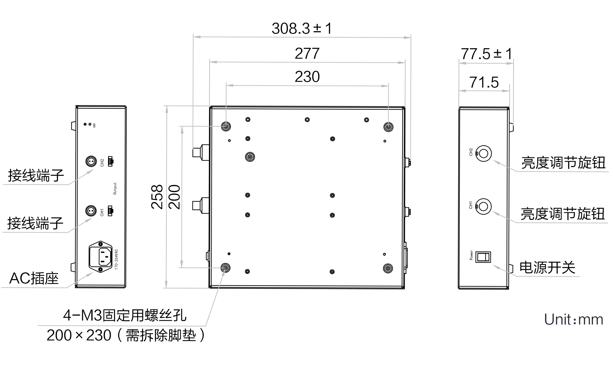 外形尺寸 | 308.3 mm × 258 mm × 77.5 mm |
