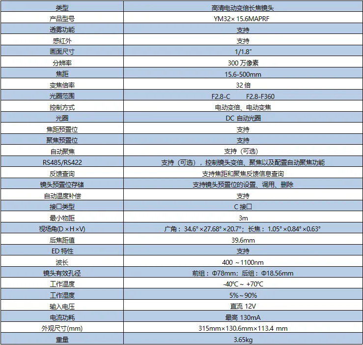 山田YAMAKO YM32×15.6MAPRF 高清电动变倍镜头