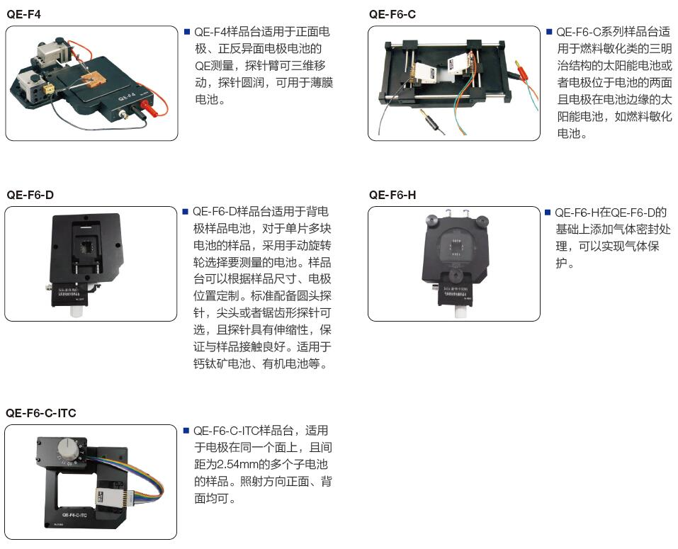 QE-F6-D | 背电极样品台,探针位置固定, 通过选择开关选择测量不同电池 |