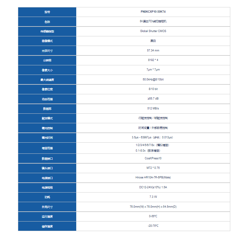 I-Tek埃科 PN8KCXP10-50KT4 线扫描相机