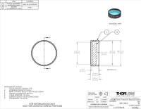 镜盒经过氧化发黑处理,并刻有产品型号、焦距和镀膜信息(如果有镀膜)。壁厚的设计考虑了使用SM1RR卡环固定透镜时,卡环可与柱面透镜全接触。