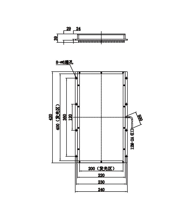 发光区尺寸 | 400 mm × 200 mm |