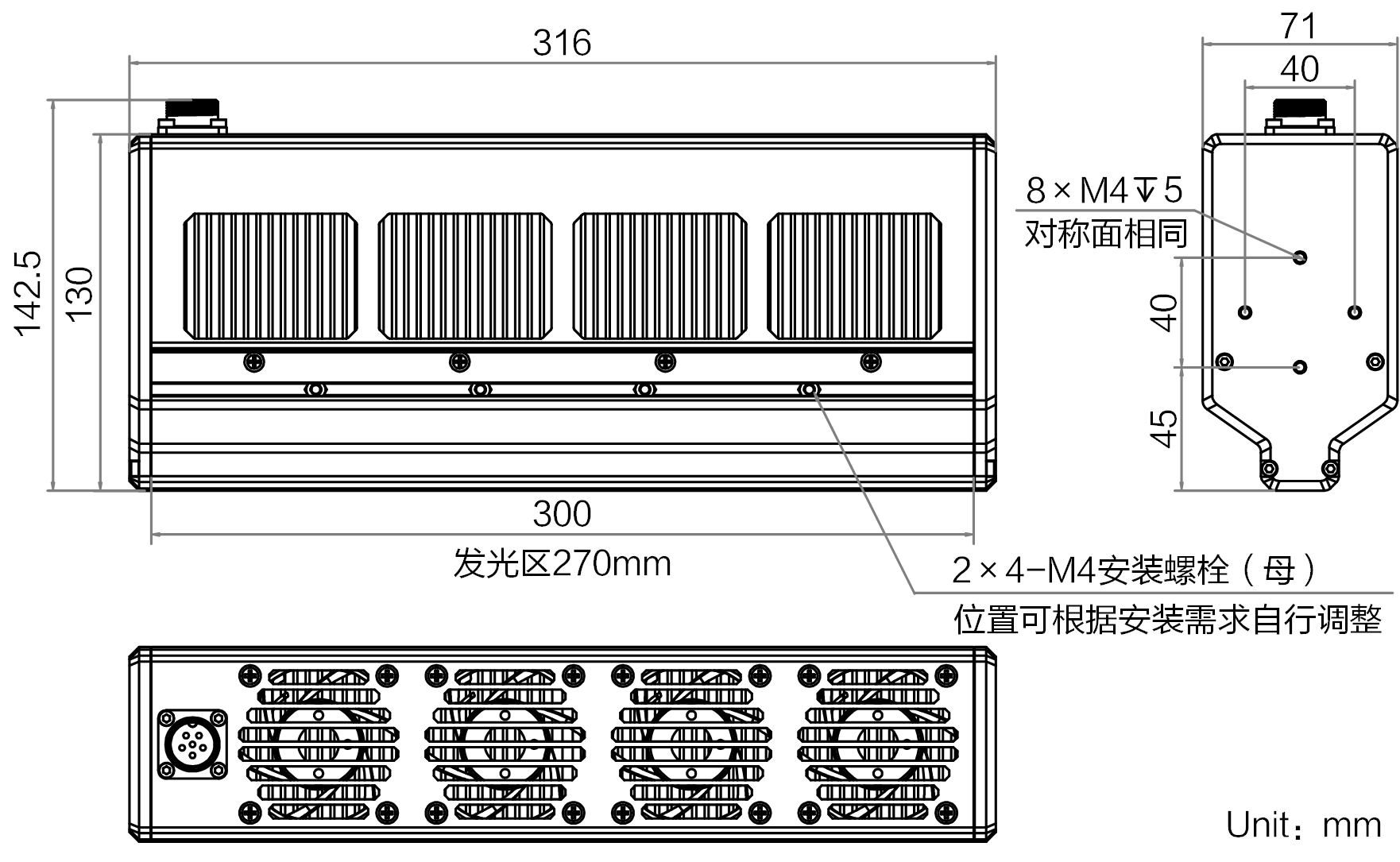 结构 | 外形尺寸 | 316 mm × 142.5 mm × 71 mm |