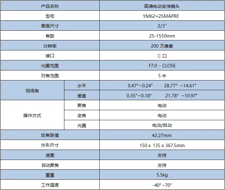 山田YAMAKO YM62×25MAPRF 高清电动变倍镜头