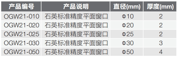 C. OGW21系列,紫外熔融石英,标准精度,平面窗口