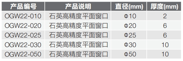 D. OGW22系列,紫外熔融石英,高精度,平面窗口