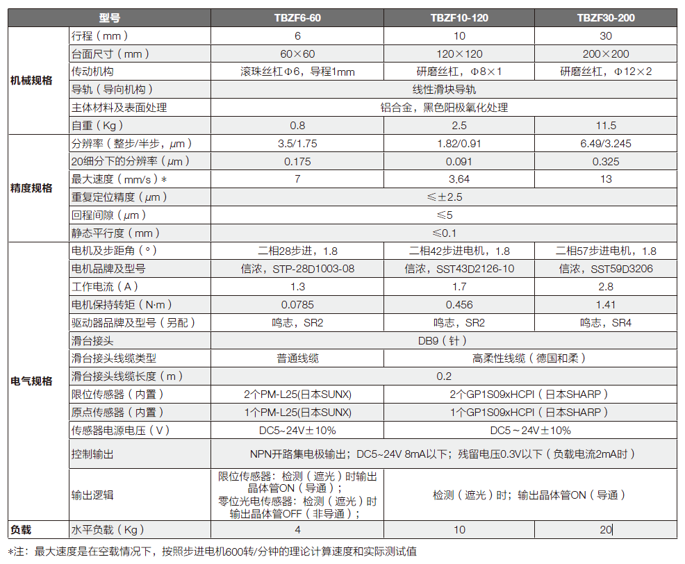 TBZF 系列电动升降滑台是卓立汉光为解决小尺寸、高重复使用频率等情况专门设计的精密型电动升降滑台。该系列产品主体材料采用硬质铝合金,表面黑色阳极氧化处理,耐磨性好、外型美观。采用线性滑块导轨,强度高、负载能力强、耐用性好,配合卓立汉光特有的导轨面精密加工技术,使该系列产品具有较高的运动精度。驱动机构采用丝杠,标配二相步进电机,可提供较高的分辨率和定位精度。