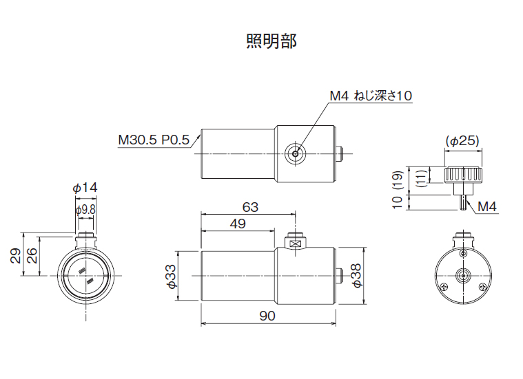 照射范围 WD=150mm/照度 | φ105mm / 18,000lx |