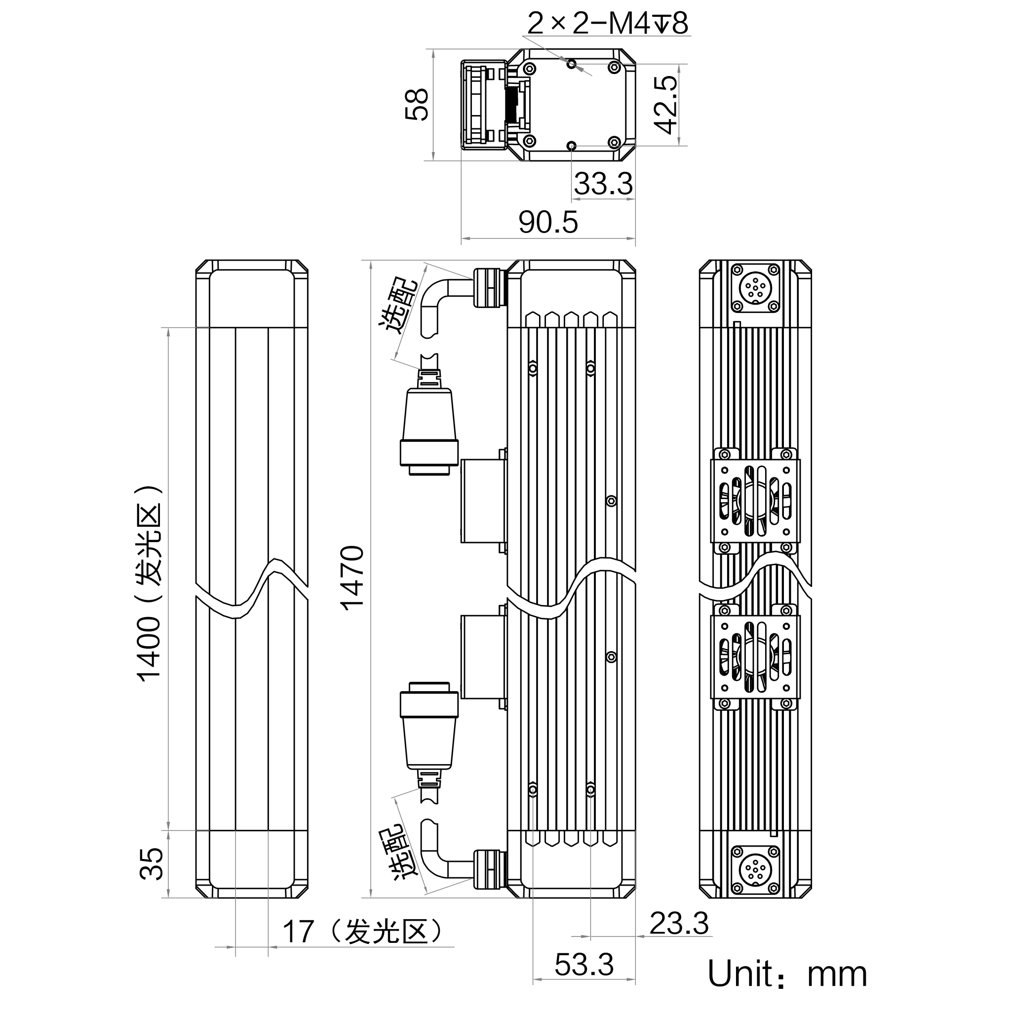 结构 | 外形尺寸 | 1470 mm × 58 mm × 90.5 mm |
