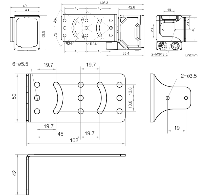 外形尺寸 | 平角:80.1 mm × 43 mm × 44.3 mm 直角:58.5 mm × 43 mm × 65.4 mm |