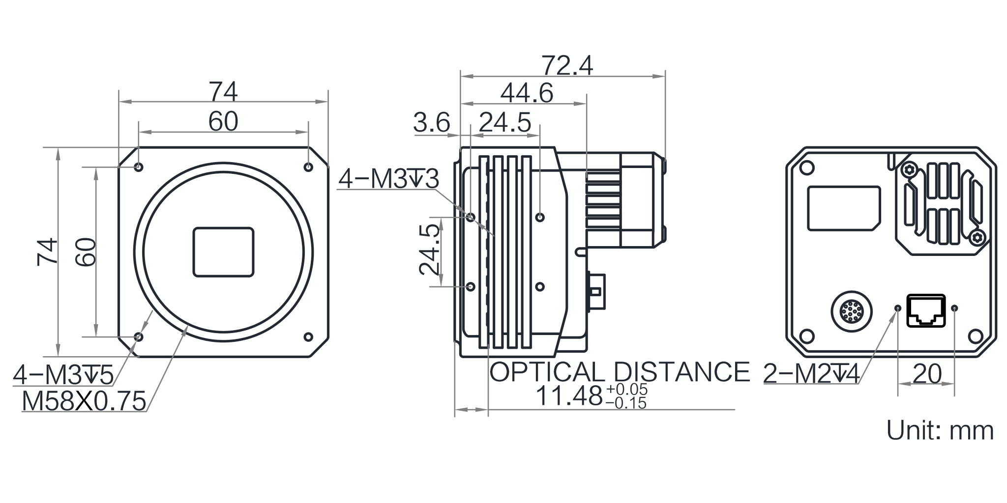 结构 | 镜头接口 | M58*0.75,法兰后焦 11.48 mm |