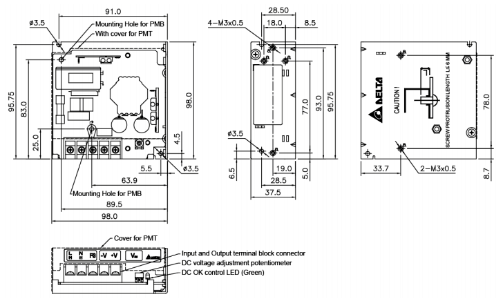 物理规格 | A端接口 | Terminal block (220 VAC Input) |