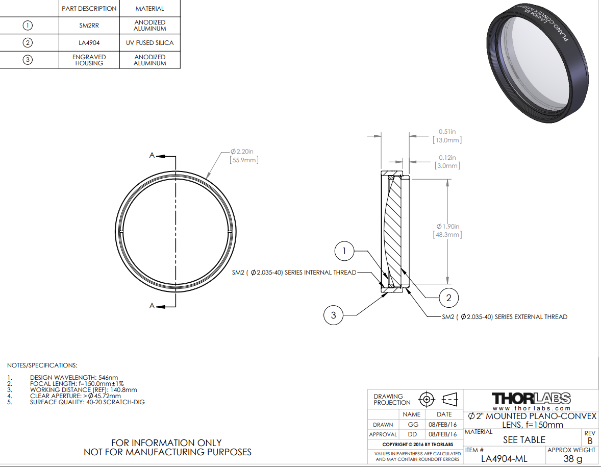 - 提供Ø1/2英寸、Ø1英寸,Ø2英寸和Ø75 mm 透镜,安装在SM螺纹外壳中