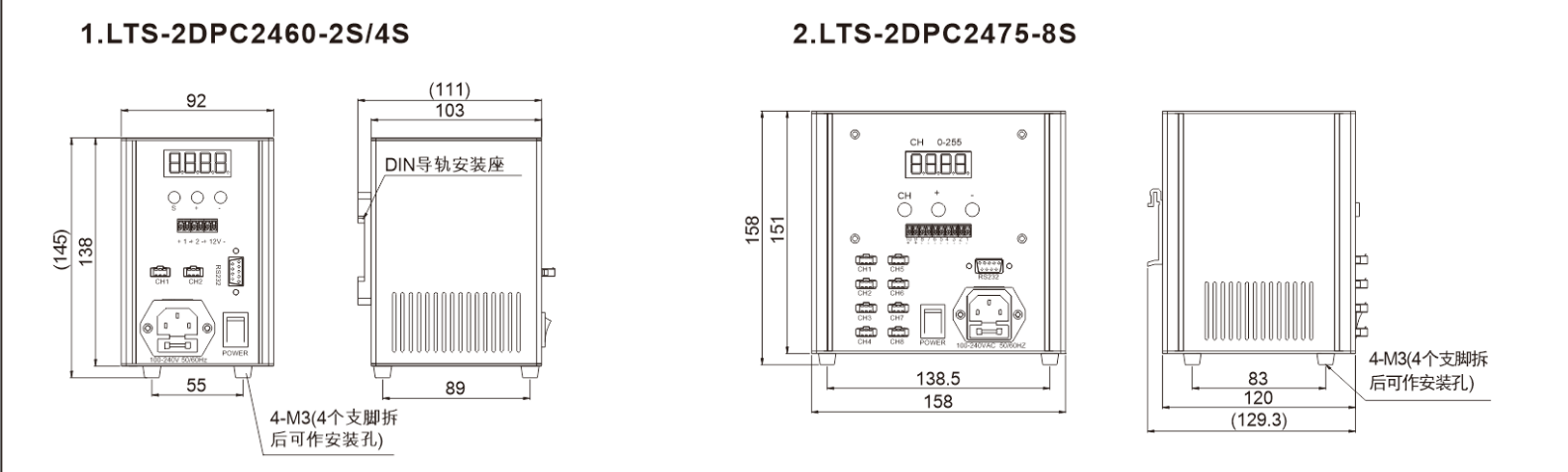 型号 | LTS-2DPC2460 -2S/4S | LTS-2DPC2475 -8S | LTS-2DPC24120 -8S | LTS-2DPC24200 -4S | LTS-2DPC24200 -8S | LTS-2DPC24400 -2S | LTS-2DPC48600 -2S | 备注 |