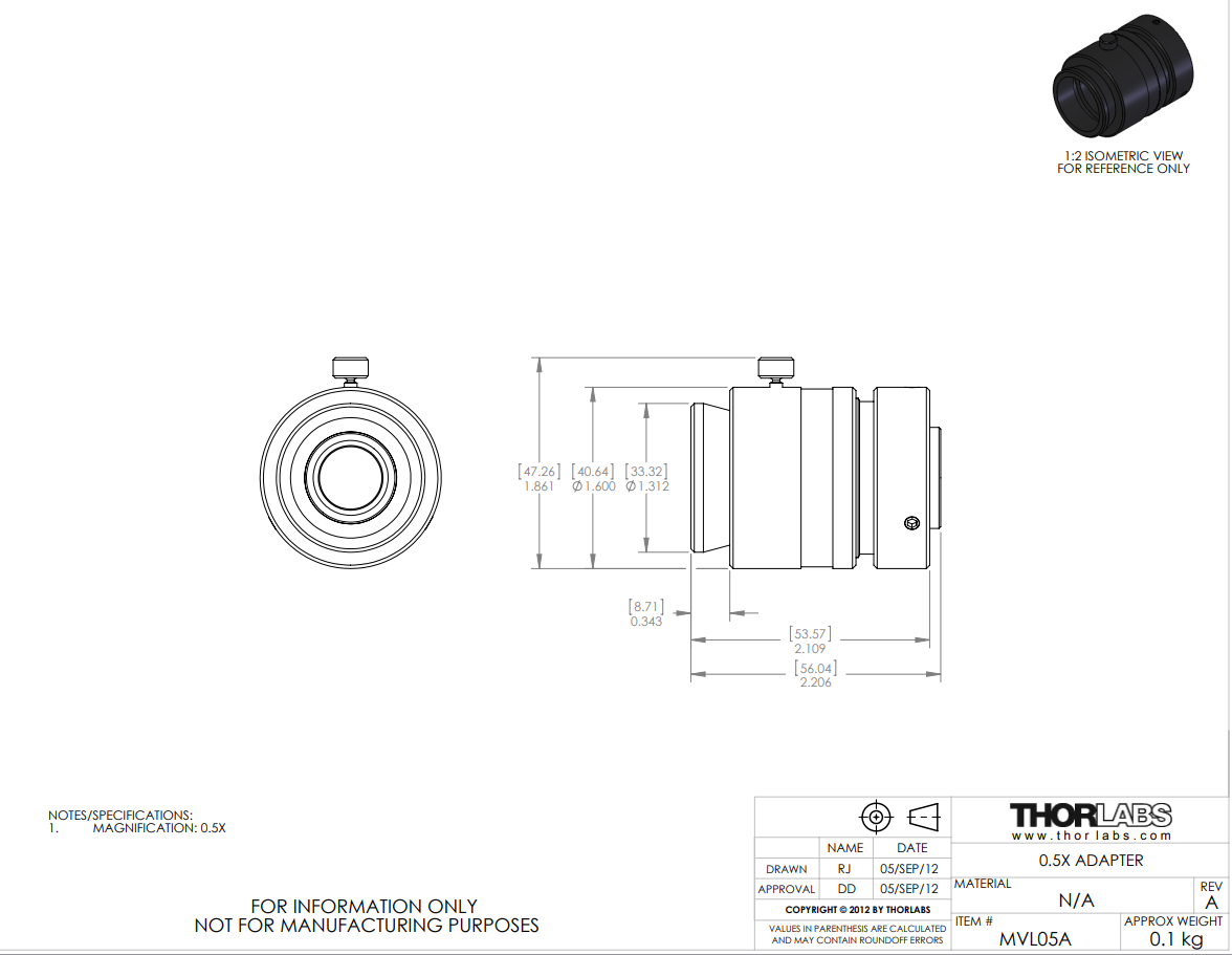 MVL05A - 0.50X延长套筒,用于6.5X和12X变焦镜头