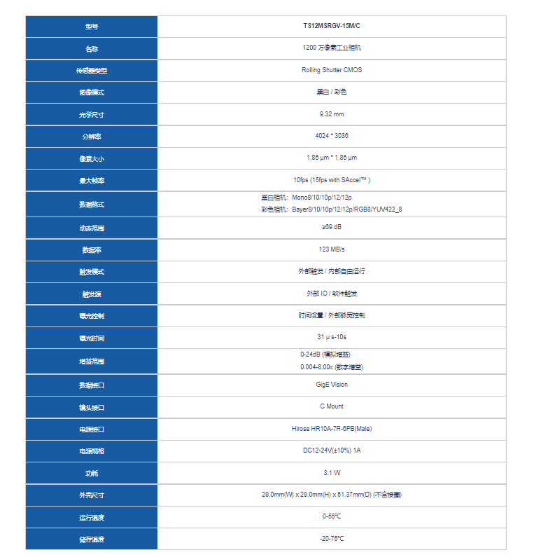 I-Tek埃科 TS12MSRGV-15M/C 中小幅面扫描相机