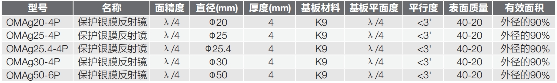 · 与铝膜反射镜相比,在可见光到红外波段可得到更高的反射率。