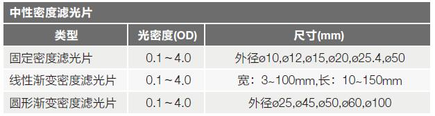 注:吸收式中性密度滤光片选型表 详见产品资料