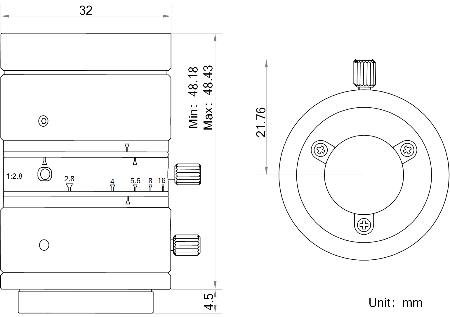 外形尺寸 | Φ32×48.43 mm |