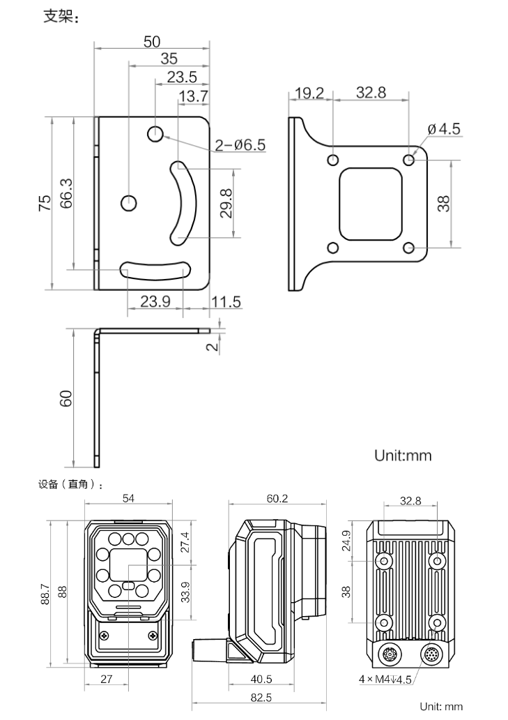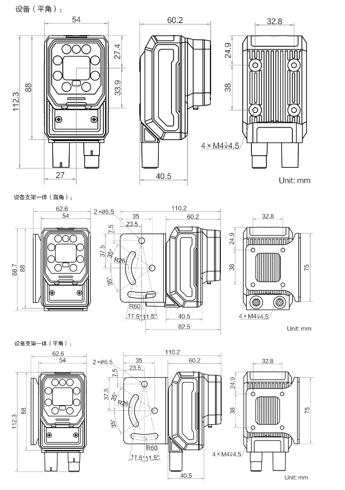 外形尺寸 | 平角:112.3 mm × 54 mm × 60.2 mm 直角:88.7 mm × 54 mm × 82.5 mm |